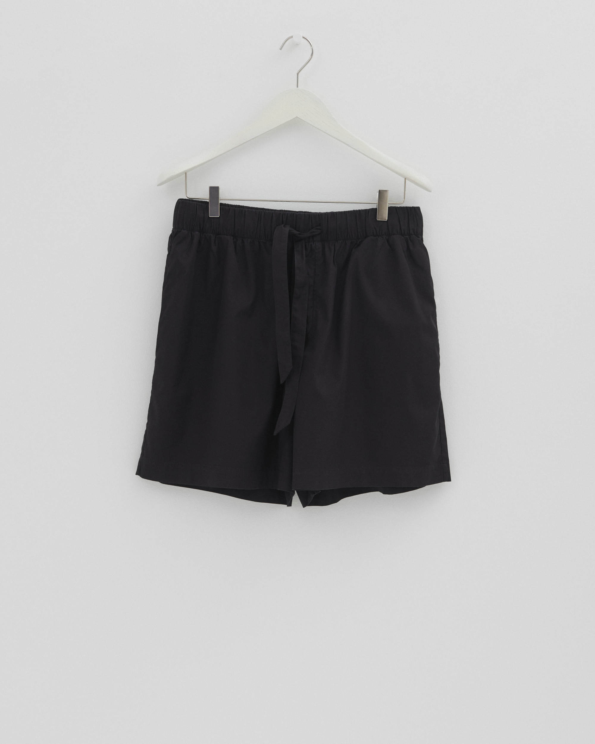 T-shirt in Washed Black. Poplin shorts in Soft Pink. Beach bag in Olive.